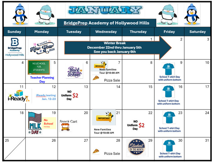 Please review the January calendar and be prepared to start the new year on a positive track